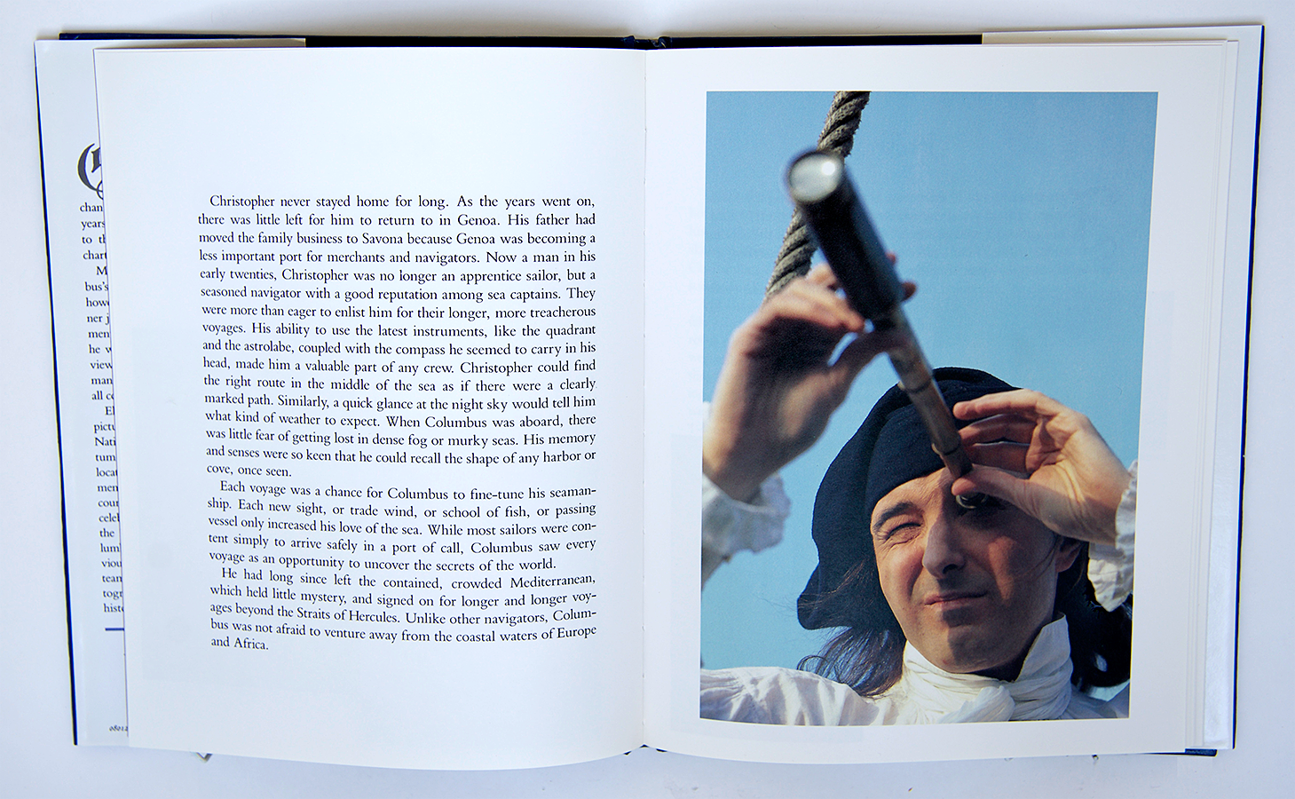 The book tells the story of the years leading up to the voyage that Christopher Columbus made in 1492. The life of Columbus from boy, young seaman, and visionary is told with the backgrounds of the ancient streets, docks, and ships, in the seaport of Barcelona, Spain.