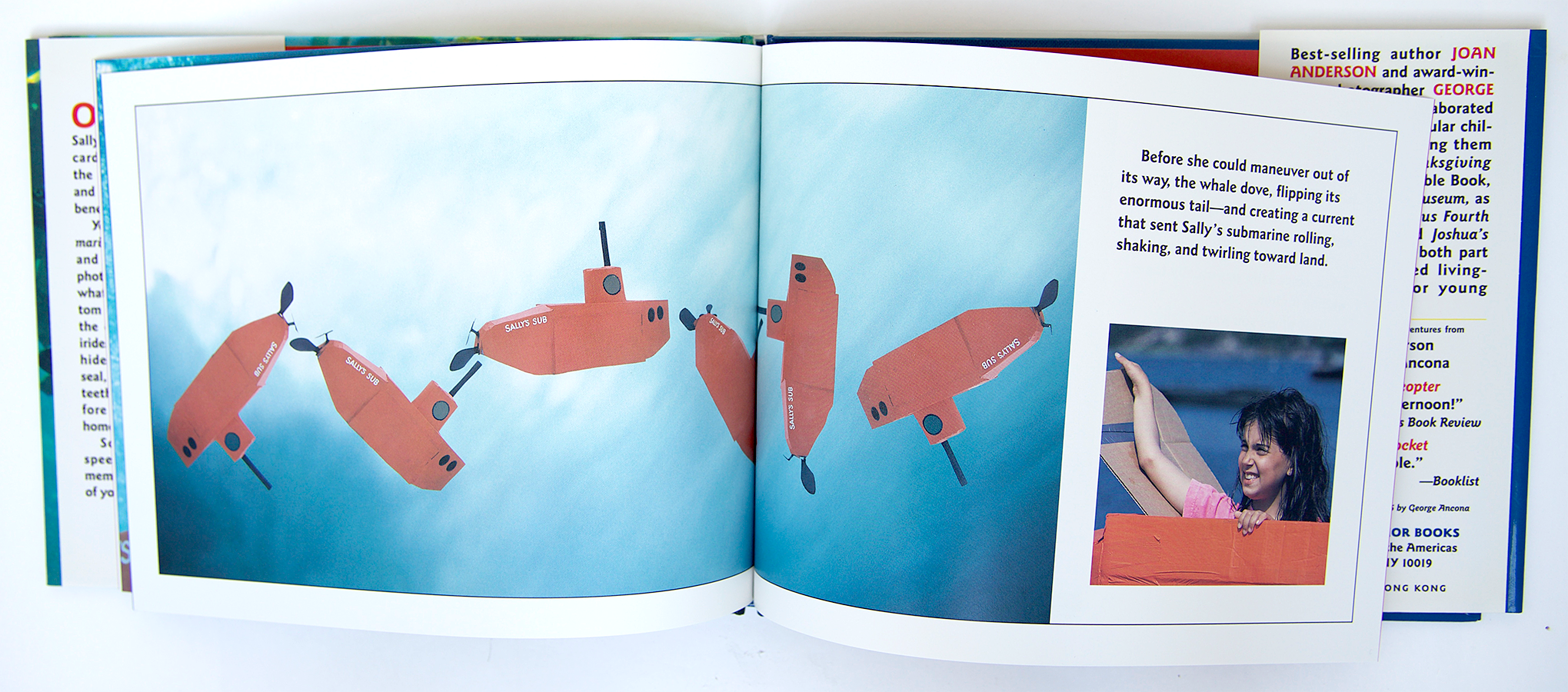 You can, too, in Sallie’s Submarine. The action packed text and innovative you-are-there photographs let you experience what it is really like at the bottom of the sea. You’ll drift with the current among schools of iridescent fish, play underwater hide-and-seek with a curious seal, and dodge the razor-sharp teeth of a menacing shark before plotting your course for home.