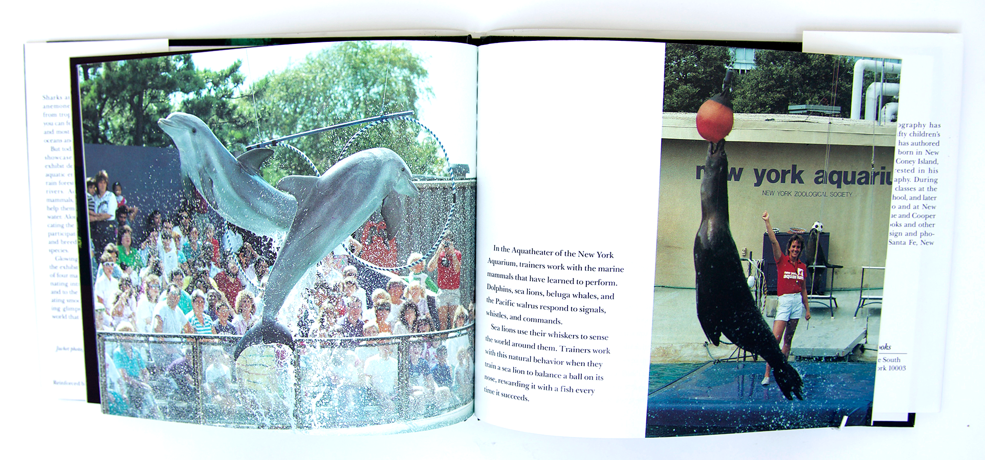 “Four aquariums are featured in nearly 90 photos by George Ancona in THE AQUARIUM BOOK. The photographer’s concise text shows that these living museums include mammals and birds as well as fish. A brief look behind the scenes reveals the work of the aquarists who care for the marine life, the scientists who conduct research, and the divers, trainers and teachers who bring sea creatures and humans together. Teachers who take field trips to aquariums will want to share this title before the bus pulls out of the school yard.”